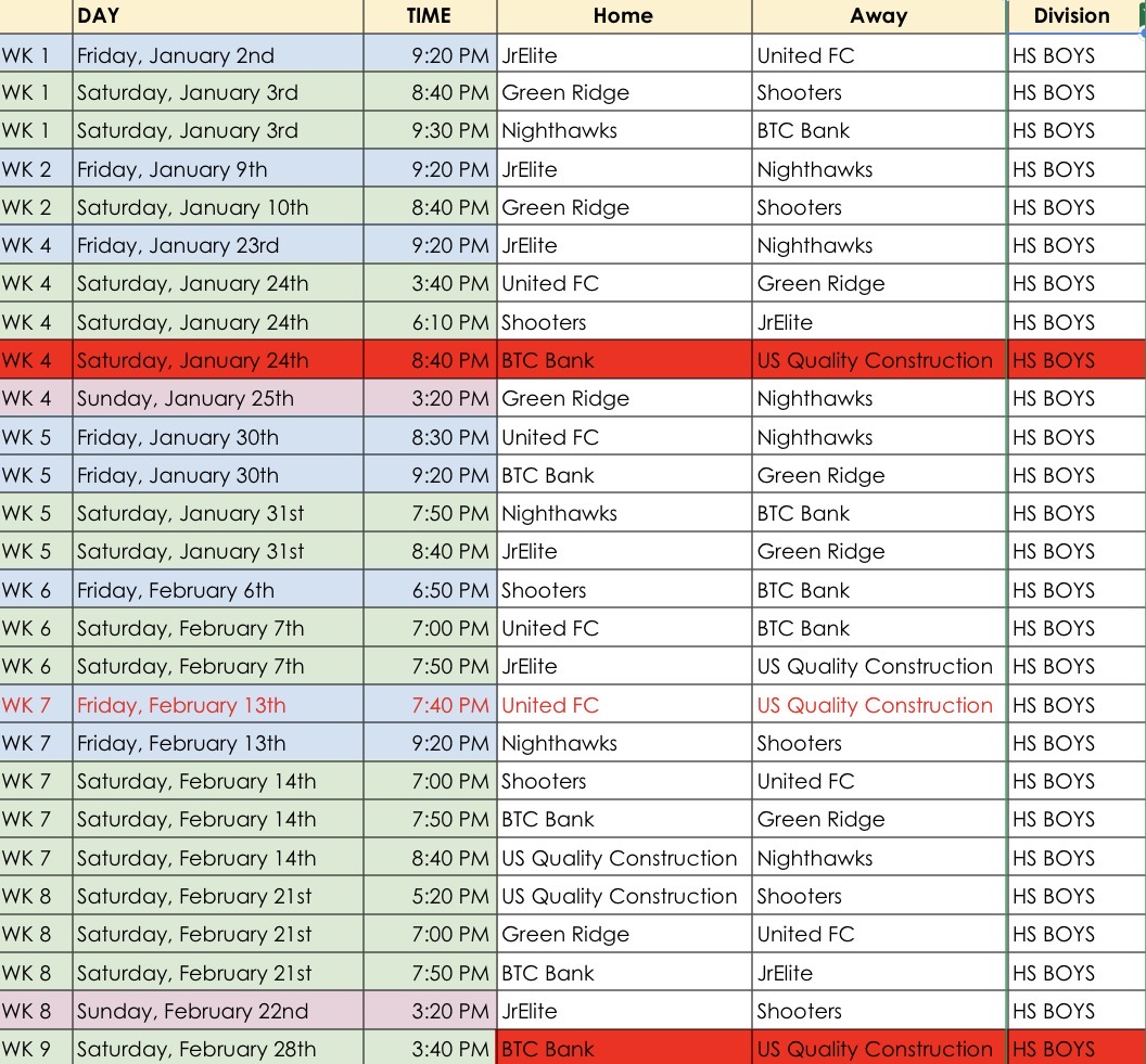 GAMES IN RED HAVE BEEN RESCHEDULED!!!