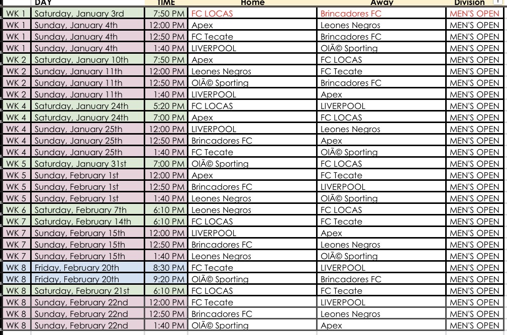 WINTER 2026 FUTSAL SCHEDULES